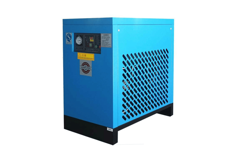 冷冻式干燥机工作原理是指由热交换系统、制冷系统和电气控制系统三部分组成的原理。压缩空气首先进入预冷却器进行气-气或气-水的热交换,除去一部分热能,然后进入冷热空气交换器,和已经从蒸发器出来被冷却到压力露点的冷空气进行热交换,使压缩空气的温度进一步降低。
