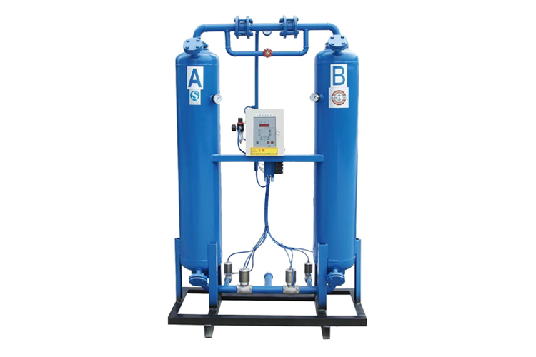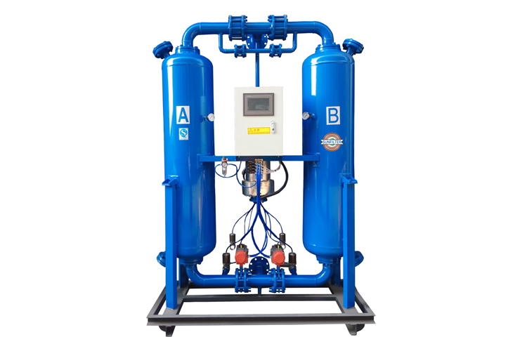 无热再生吸附式压缩空气干燥机是利用干燥剂材料本身所持有的微孔,根据毛细作用吸附空气中的水分子,同时根据泄压脱附和吸附余热升温来脱去所吸附的水份。设备一般制成双筒形式,在程序控制器的控制下,两筒交替工作,一管吸附水份,另一筒解吸再生,连续循环地工作。